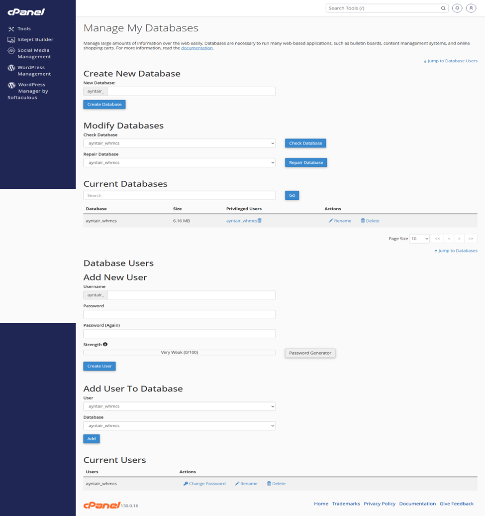 پس از این کار، دیتابیس آماده است و میتوانید فایل SQL خروجی از هاست قدیمی را در آن ایمپورت کنید.
