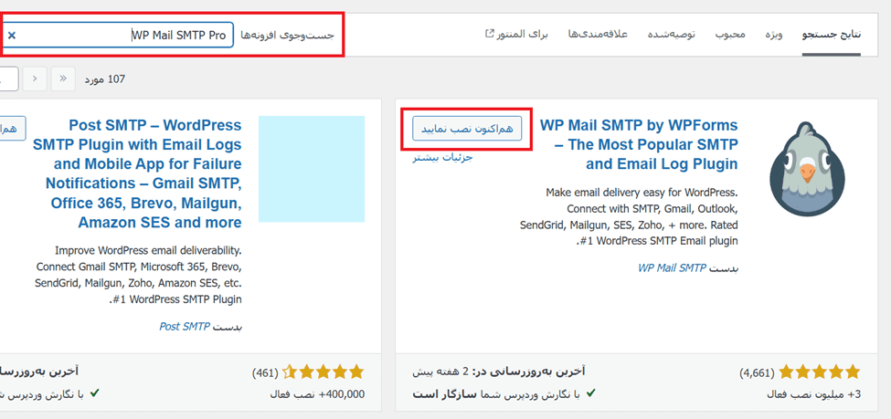 سپس افزونه SMTP را نصب جستجو کرده و نصب میکنیم.